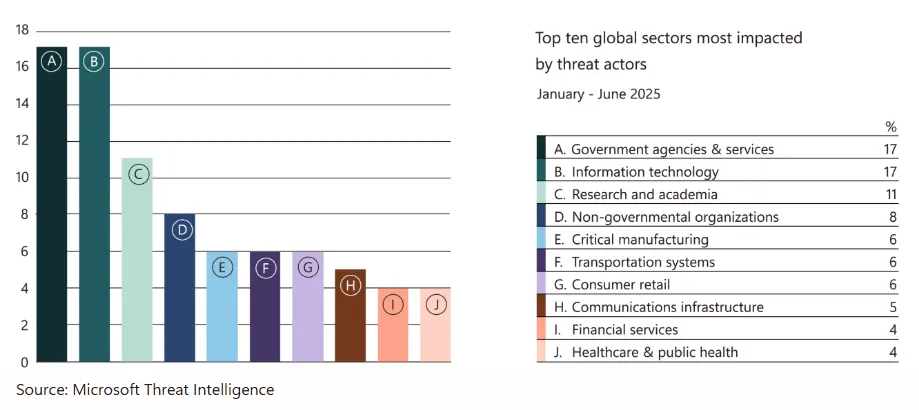 Industries handling large volumes of sensitive data continue to face the most intense attacks. According to the Microsoft Digital Defense Report, the most targeted sectors include government institutions (17%), scientific and educational organizations (11%), transportation systems (6%), financial services (4%), and healthcare (4%).
